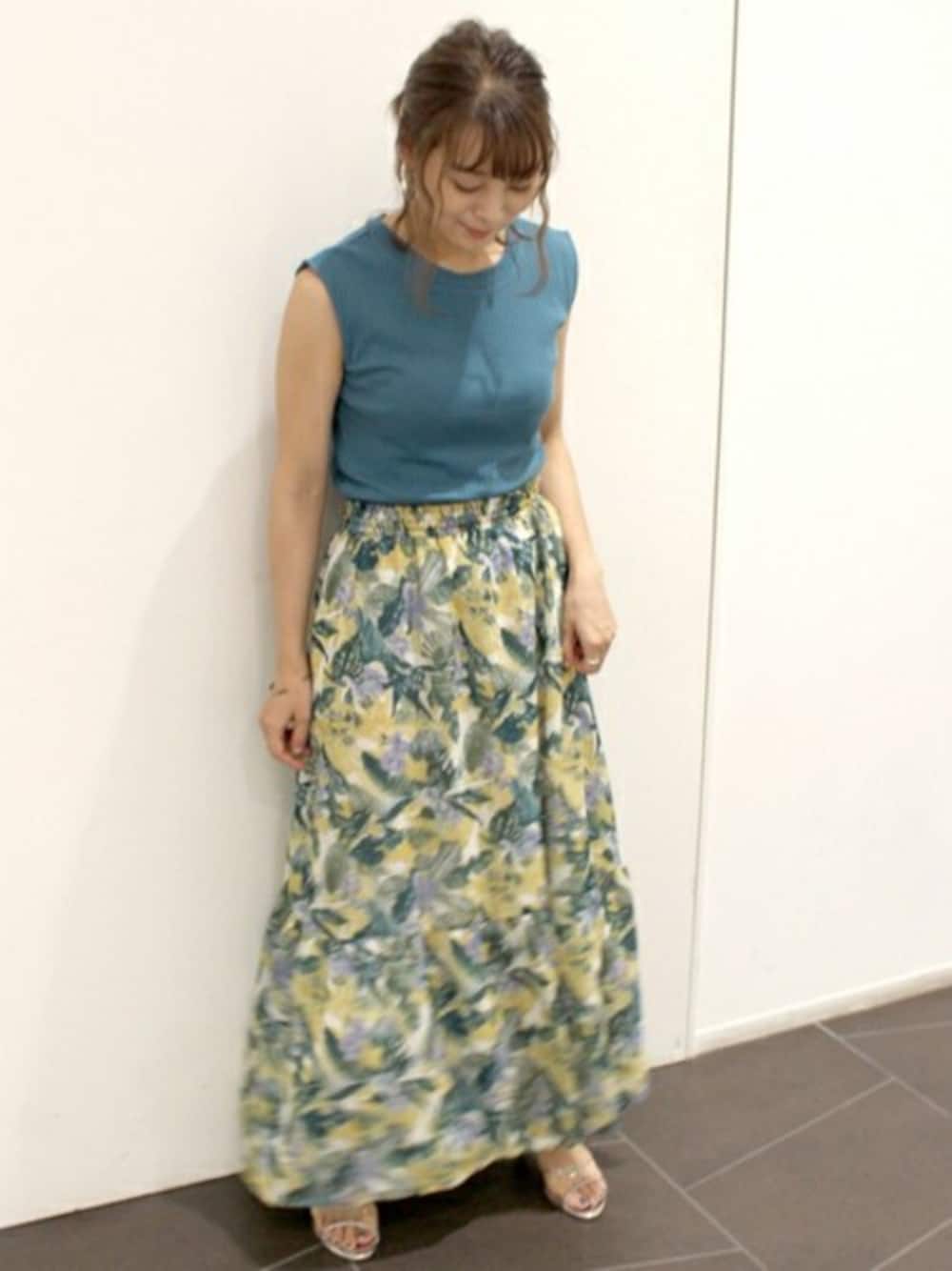 erinaのスカート「リーフフラワーロングスカート◆」を使ったコーディネート