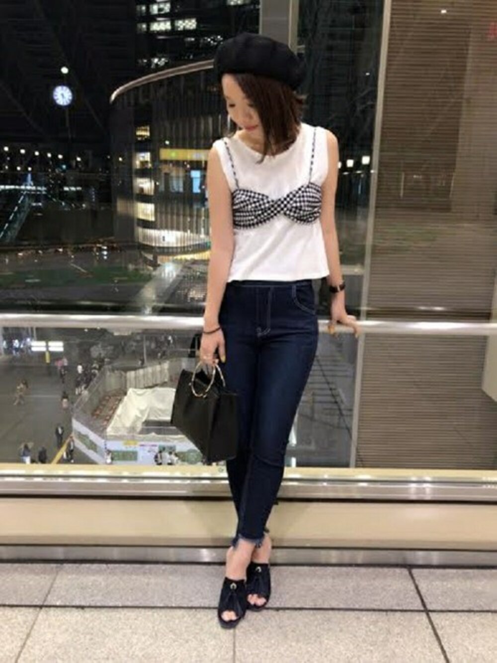 YUKKOのTシャツ/カットソー「ギンガムビスチェ×Tシャツセット◆」を使ったコーディネート