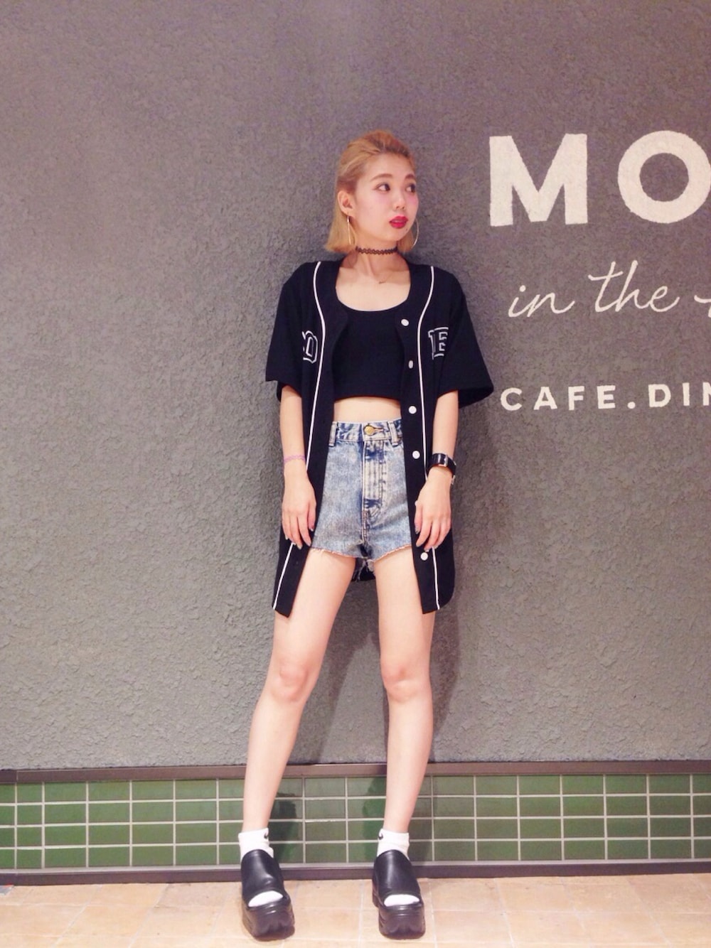 ベースボールシャツの中にビスチェとショーパンを合わせてスポーティーコーデにしました(^○^)♩♩ ベースボールシャツを脱いでも可愛いし閉めて着ても可愛いくてオススメです!! こちらの画像提示でレジにて10%OFF になります!!