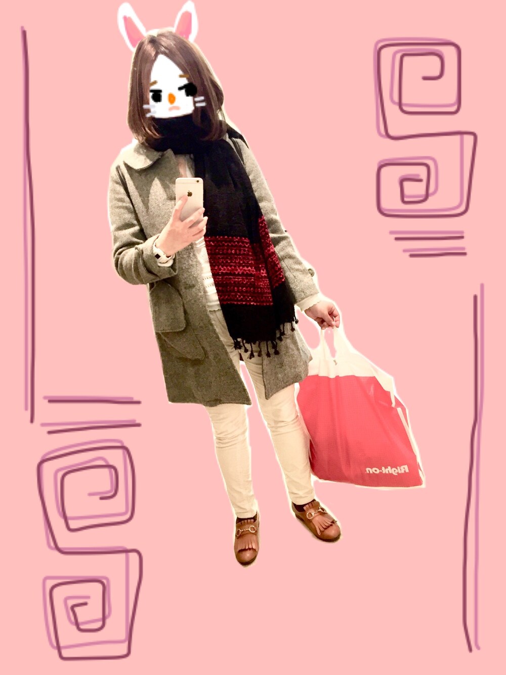 1/6にして、ようやく初詣へ。。🎍⛩🙏 マフラーの巻き方が分からず やっぱりネッグウォーマーのほうが楽だと 改めて実感しました🐰💧 顔落書きは 調子乗りました🐰💧(T-T)
