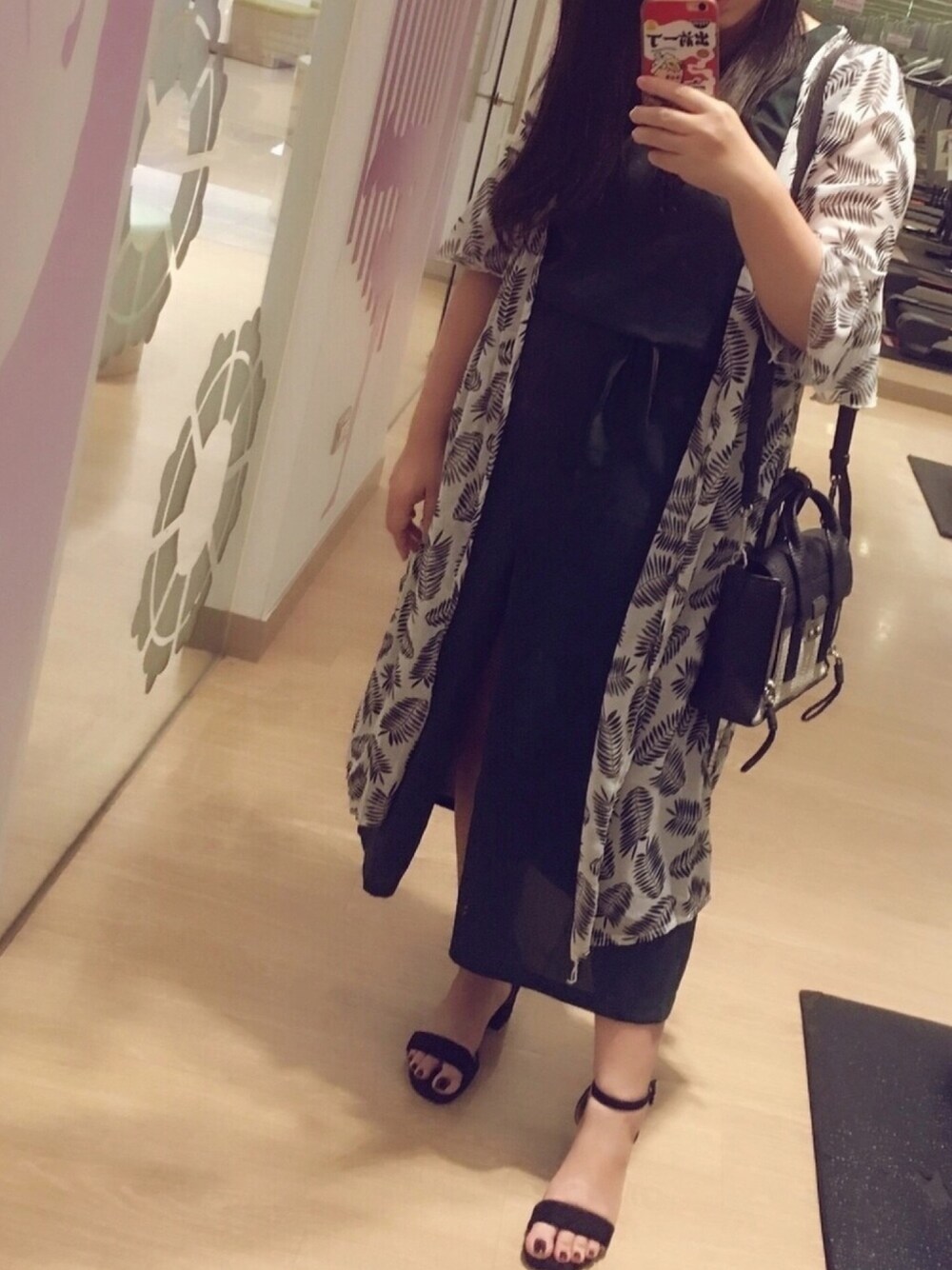 #夏日藏肉大作戰 冬天到現在胖了10kg 褲子塞不下只好改穿洋裝😭 無袖洋裝雖然成功遮肉 但真不想露出粗壯的手臂 所以搭上罩衫✌️ 葉子圖圖印花跟綠色洋裝很搭 夏日涼鞋有一點高度 看起來讓比例更好 這雙一字涼鞋是絨料布面 視覺質感真的很好🤤 這雙👉 https://lihi.cc/2QXNT