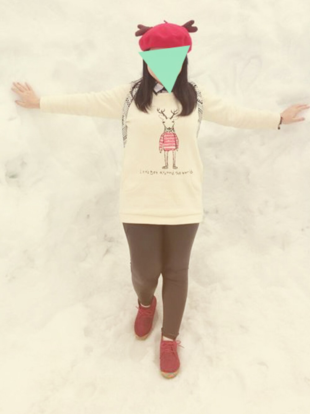 はじめまして!雪~黑部立山雪壁的穿搭>>> Color:紅,米白,黑 Top:一想到雪就想到可愛糜鹿,決定以鹿的相關做為穿搭主題❤內裡是穿著襯衫,外部是內鋪眠的糜鹿人造型上衣。 Bag:出門在外有個後背包,除了方便行動,也可以裝入很多失心瘋亂買的東西haha Hat:平日在台灣戴起來很搶眼的麋鹿角紅帽,在這邊一切都很自然!一片雪茫茫的雪壁,麋鹿人的正當性~ Pants:內鋪棉的黑色窄管褲,好搭的單品~ Shoes:旅程一路上都需要一直走路,有雙好走的鞋十分重要!糜皮平底鞋可以應付大大小小的山路,但下次建議可以穿雨靴,雪融化的地方會讓鞋濕濕的QQ