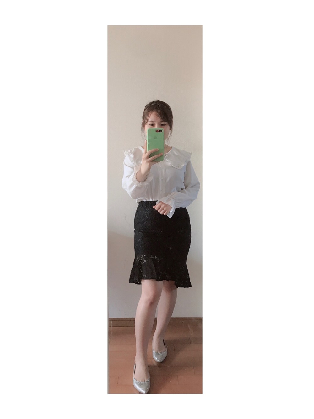 ブラック系のスカート、ホワイト系のシャツ/ブラウスを着用したレディースの夏コーディネートの1枚目の写真