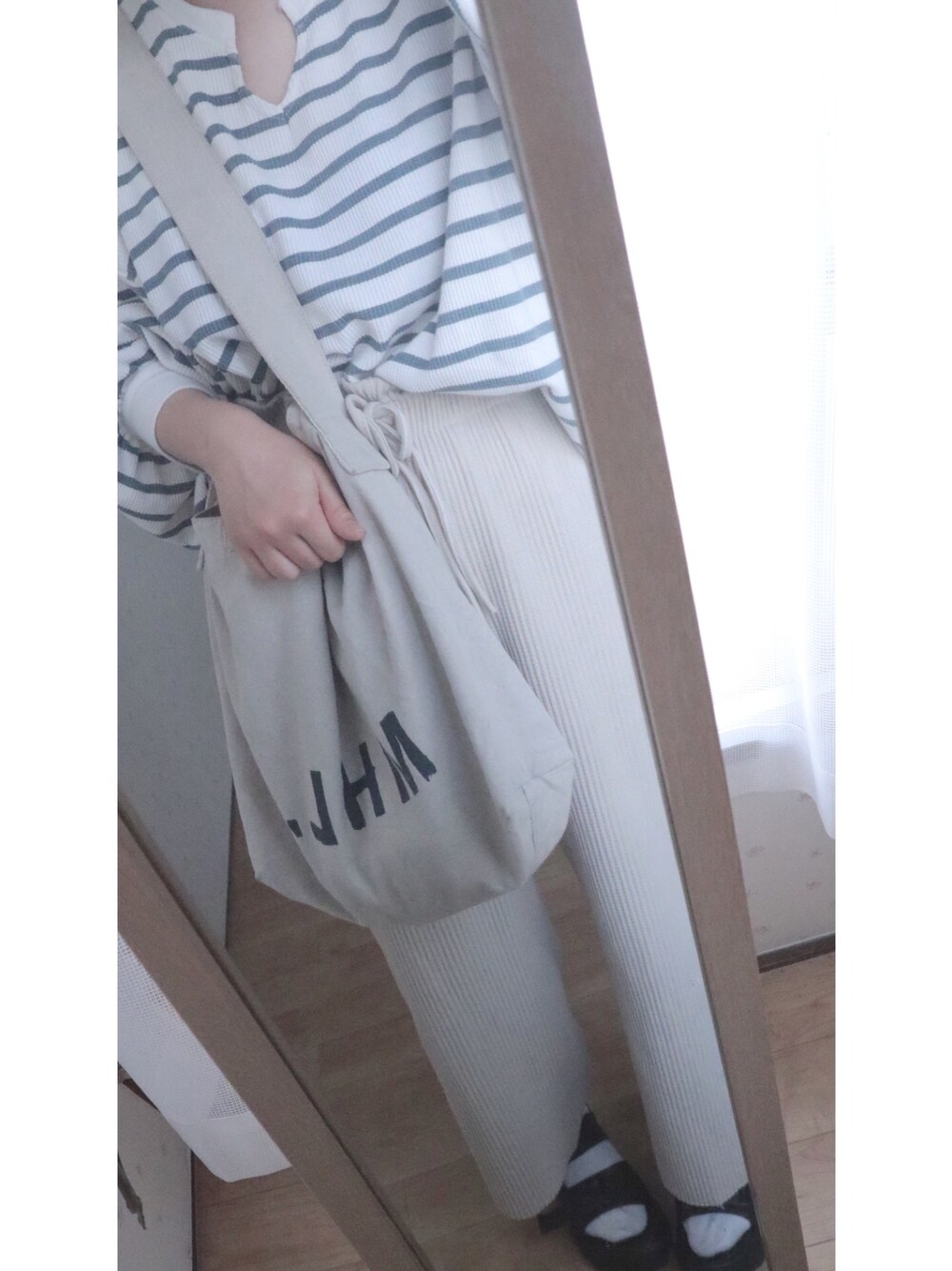 雨のTシャツ/カットソー「ワッフルボーダーキーネックトップス【ZOZOTOWN限定アイテム】」を使ったコーディネート