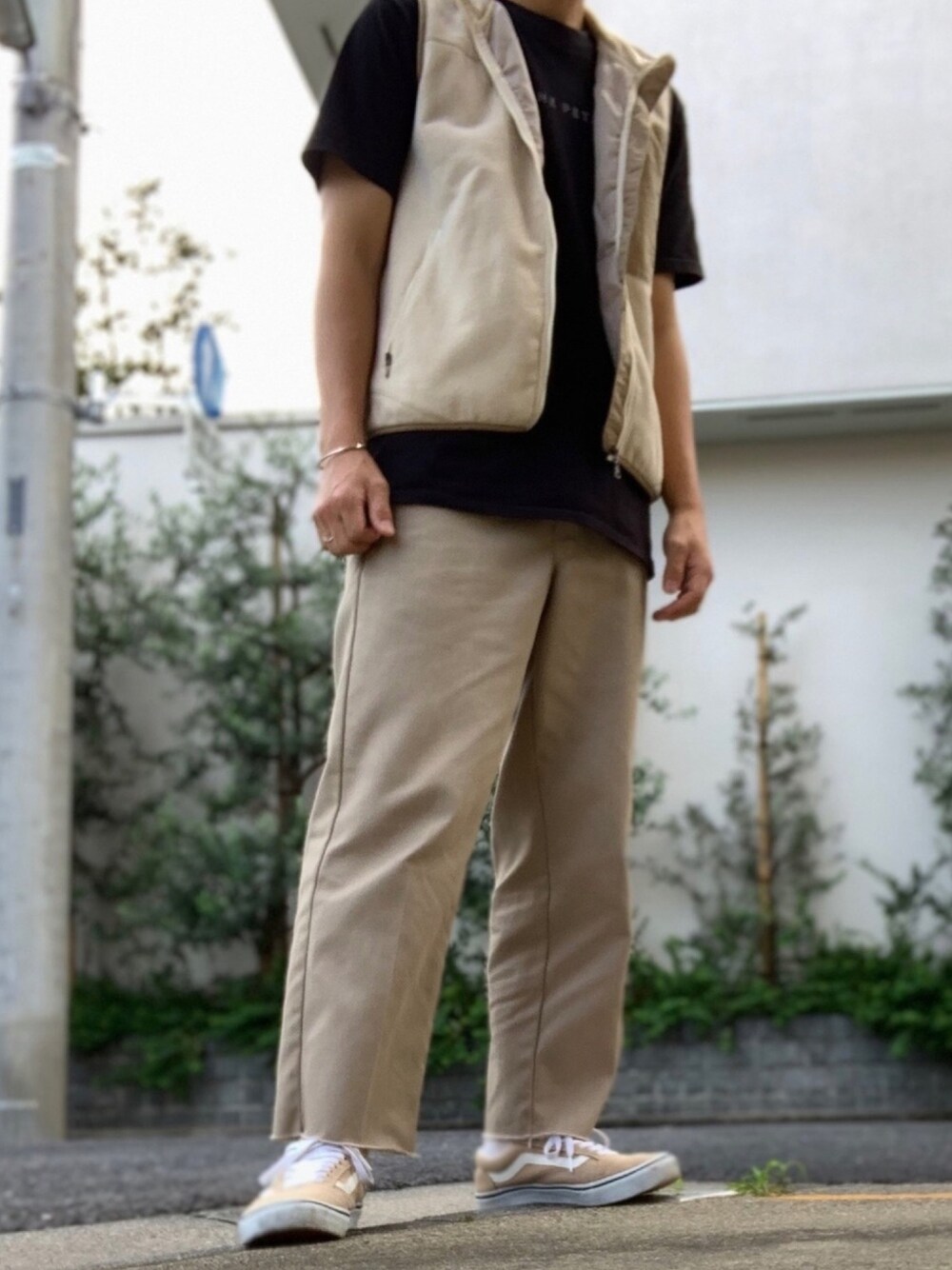 Yoheiのスニーカー「VANS ヴァンズ OLD SKOOL DX オールドスクールDX V36SCL+ 18FA BEIGE」を使ったコーディネート