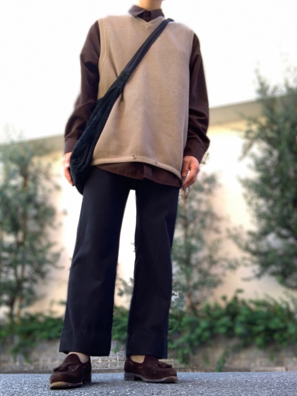 Berwick × UNIVERSAL LANGUAGEBEAMS¥1,980VINTAGEVINTAGEBEAMS¥8,580UNUSEDこの画像から似たアイテムを検索できます1,25141お気に入り (8)410YoheiさんへのコメントNO COMMENTコメントはスマートフォン用アプリからご利用できます着用アイテムBerwick × UNIVERSAL LANGUAGEBerwick × UNIVERSAL LANGUAGEローファー (ブラウン系)ローファー探すZOZOTOWNで探す¥1,980BEAMSBEAMSソックス/靴下 (ベージュ系)ソックス/靴下サイズ:ONE SIZE着用コーデ:2件探すZOZOTOWNで探すVINTAGEVINTAGE50’sフレアパンツスラックス (ブラック系)スラックス探すZOZOTOWNで探すVINTAGEVINTAGEスウェードシャツシャツ/ブラウス (ブラウン系)シャツ/ブラウス探すZOZOTOWNで探す¥8,580BEAMSBEAMSベスト (ベージュ系)ベストサイズ:LARGE着用コーデ:27件探すZOZOTOWNで探すUNUSEDUNUSEDショルダーバッグ (ブラック系)ショルダーバッグ探すZOZOTOWNで探すYoheiのローファーを使ったコーディネート靴とシャツ、靴下とベストの色を合わせて統一感を出しました。コメントを表示2019.11.9着用ブランドBEAMSVINTAGEUNUSEDタグ#秋コーデ#ベージュコーデ#ブラウンコーデ#秋#フレアパンツ#古着コーデ#BEAMS#タッセルローファー#BERWICK#UNIVERSAL LANGUAGEモデル情報男性・175cm・21歳ショートヘアー似ているアイテムBEAMS × ソックス/靴下VINTAGE × スラックスVINTAGE × シャツ/ブラウスBEAMS × ベストUNUSED × ショルダーバッグ関連フォルダ厳選🍙Yohei@linkinyo / 175cm / MEN / ミディアムヘアー0コーディネート0フォロワー注目のコーディネートアプリでもっと見るもっと見る