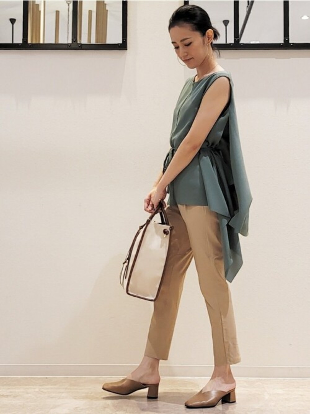 これからの季節が楽しくなるような、キレイなカラーのトップスと、合わせやすいHAKIYASEパンツコーデです。 全体を柔らかい色でまとめるだけで、一気に春に♡ ウエストマークですっきりした印象に見せるのがおすすめです。