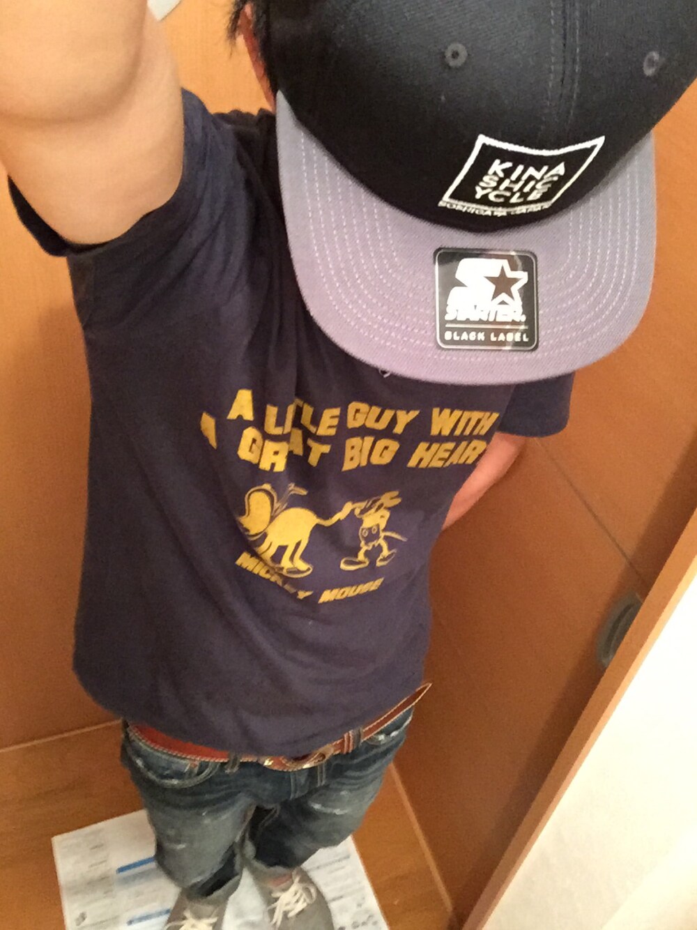 木梨サイクルキャップ再発売で、やっと手に入れました(*゚ー゚)お気に入りです☆ 今日はフォローさせていただいてる方がミッキーT投稿したはったんで、僕もミッキーT着たくなって真似しちゃいました(´ー`)