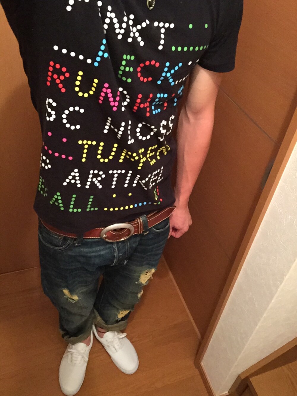 この前、勢いで買ってしまったバンズの真っ白なスニーカー! なかなか雨続きで履けませんでしたが、今日は雨降ってないんで、履いてやります(*゚ー゚) Tシャツはなかなかのデーハーな文字達ですが、普段無地Tばかりの自分にしてはなかなかのお気に入りです✨