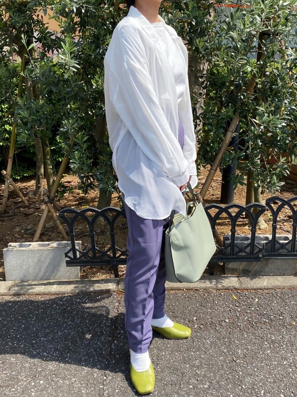 栞里のパンツ「ストレッチテーパードパンツ」を使ったコーディネート