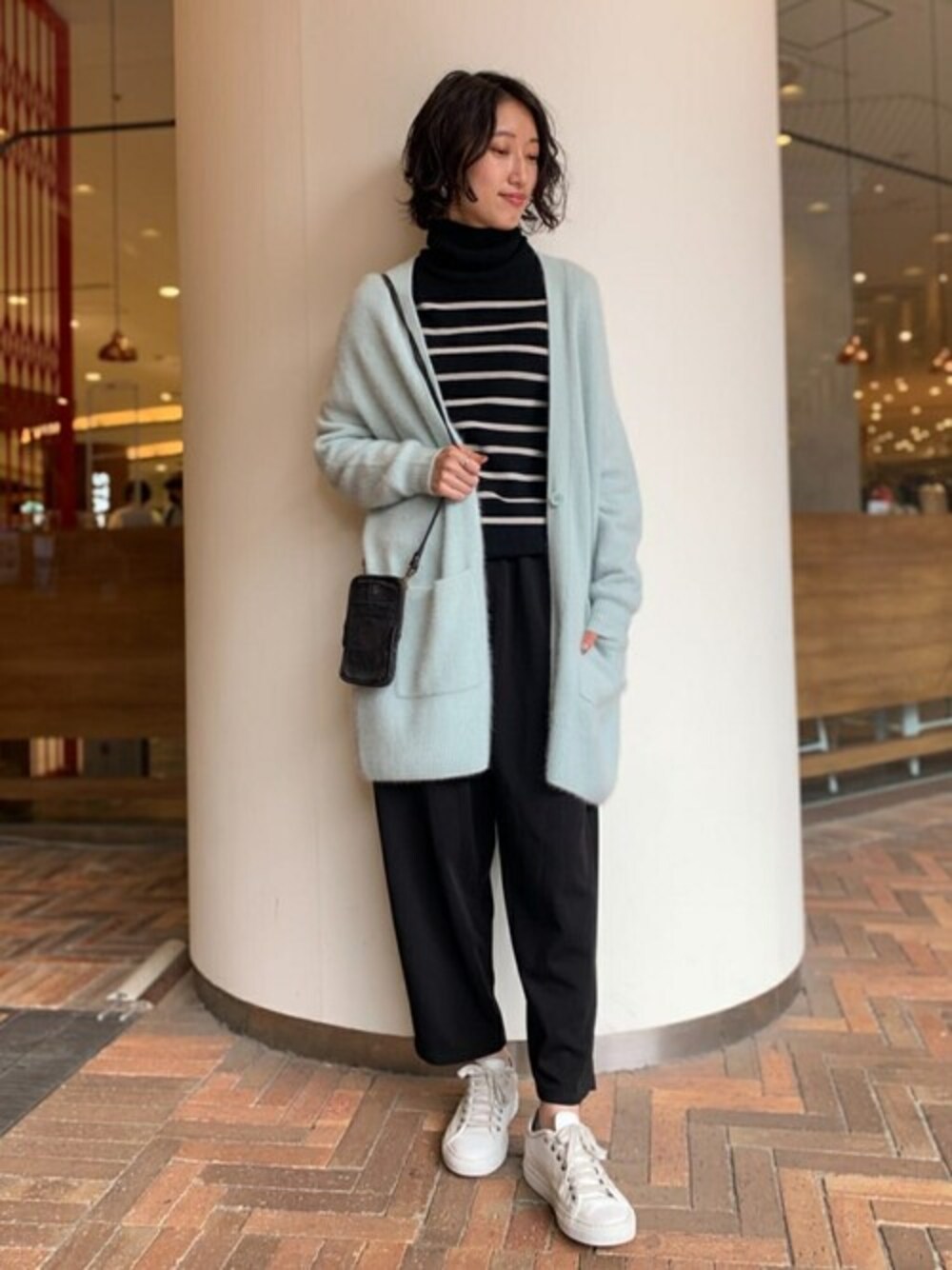 【cardigan】着用サイズ:F ラクーン素材の柔らかいカーディガン。 腰回りが隠れる着丈なので、中のトップスの長さを気にせず着て頂けます。 伸縮性:あり 透け感:なし 裏地 :なし 光沢感:なし 【tops】着用サイズ: 落ち着いたボーダーのタートルニット。 ぴったりとした着心地なので、重ね着がしやすいデザインです。 伸縮性:あり 透け感:なし 裏地 :なし 光沢感:なし 【bottom】着用サイズ:F ウエスト部分にギャザーが入ったテーパードパンツ。 ウエスト部分はゴムと紐になっているので、ウエストを調節して頂けます。 伸縮性:多少あり 透け感:なし 裏地 :なし 光沢感:多少あり 【bag】 大人気のHARBOUR 2ndのショルダーバッグ。 小さめのバッグなので、ちょっとしたお出かけに便利なサイズ感です。 【sample】 pierce,shoes