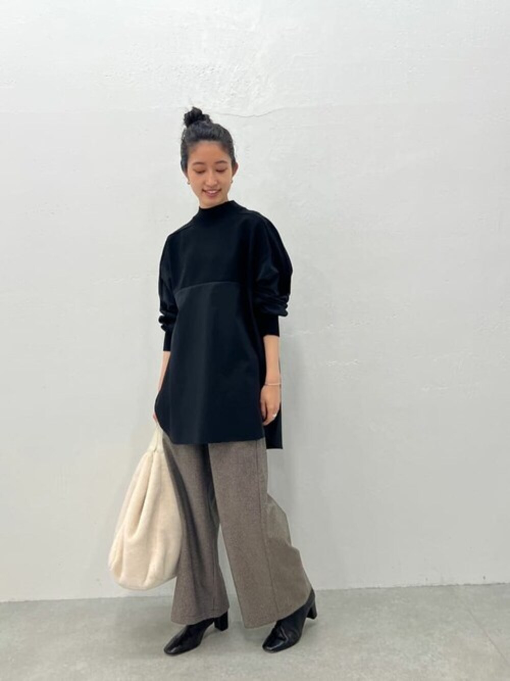 rinonのトートバッグ「フェイクボアトートバッグ:すぐにお届け! A4サイズ収納可」を使ったコーディネート