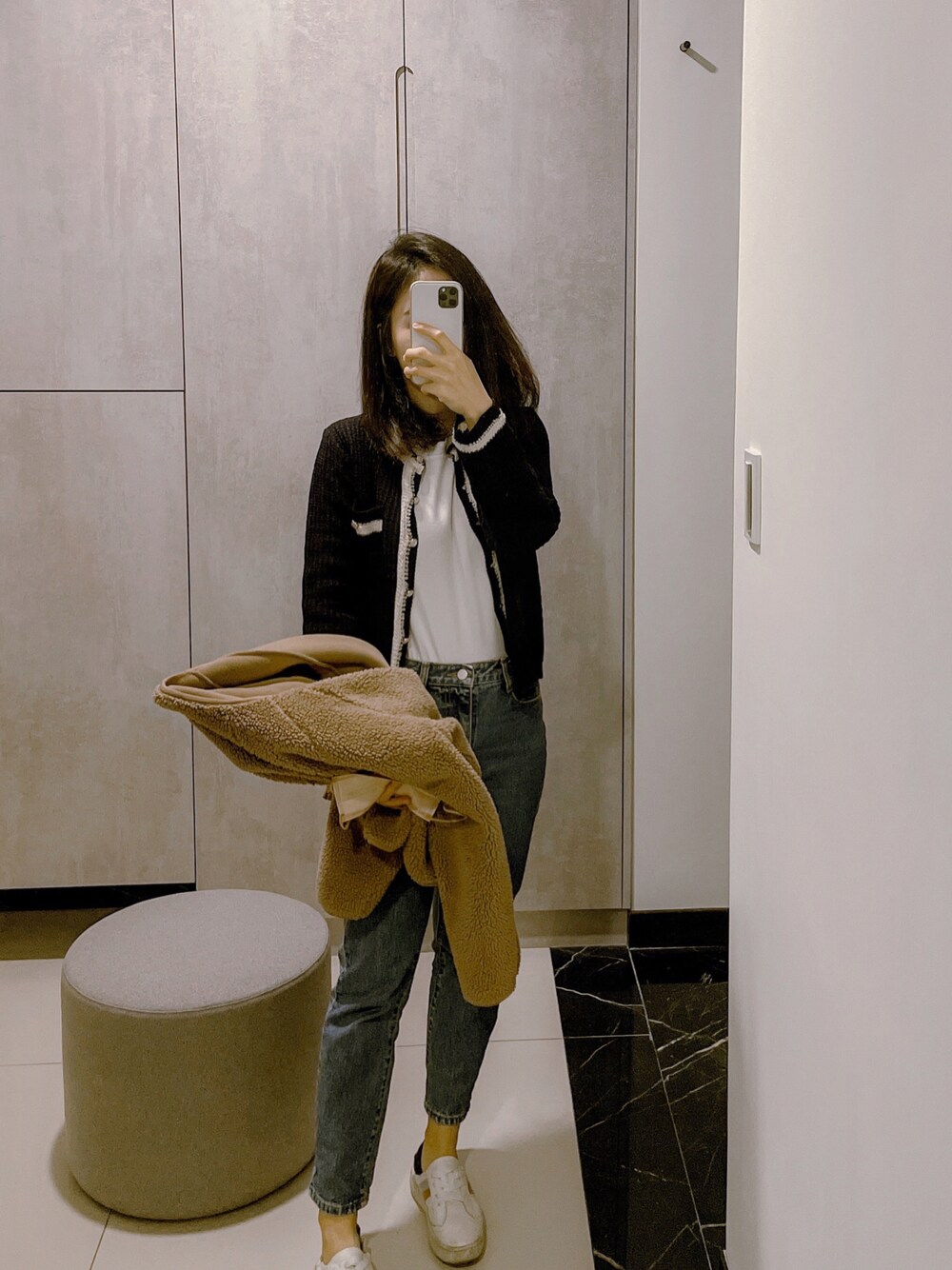 #今天穿什麼 _ 真的是春天了,在小香風針織外套裡搭個白T,一定要紮進 #牛仔褲 裡,創造 #休閒感 讓整體不會那麼女😆😆,喜歡的感覺❤️❤️ 最重要‼️小白鞋不能少喔🥂 上衣 @cherrykoko_korea 內搭T @uniqlo_taiwan (男裝我的愛) 牛仔褲 @misslovely_boutique 👉請追蹤我的IG:catherinedaily_🙏🙏