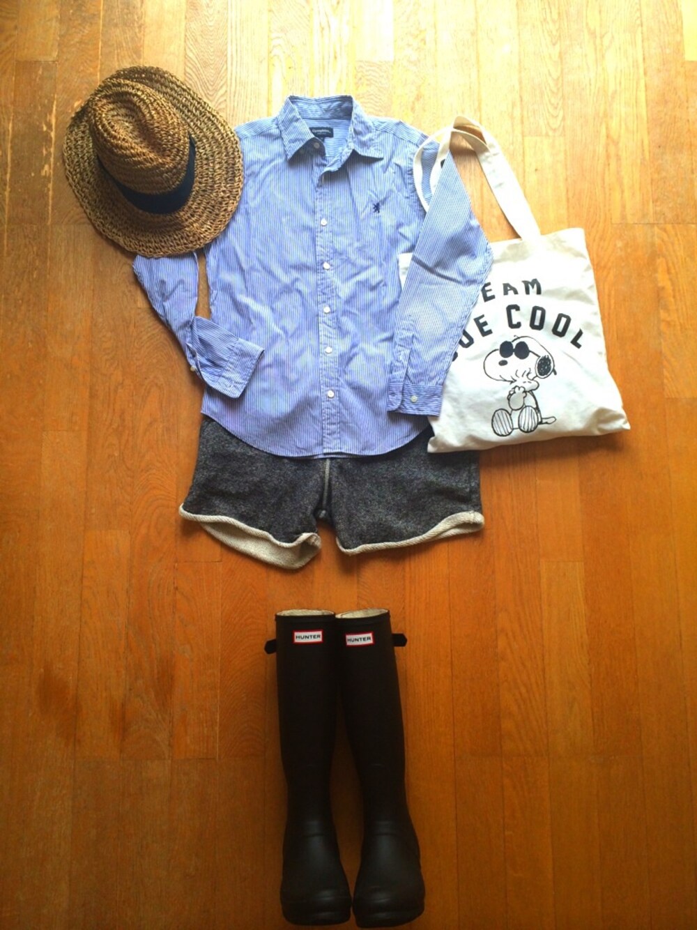 雪国なので年中レインシューズは活躍♬ HUNTERとUMOどっちもよく履きます。 湿気の多い日は低めのお団子に、被り物が定番です。 このHUNTERは普通の型と違ってサイドじゃなくて、バックに調整するものが着いていて、脱ぐときめっちゃ楽チンです^_^ 実物よりシャツがしわくちゃに見える∑(゚Д゚)