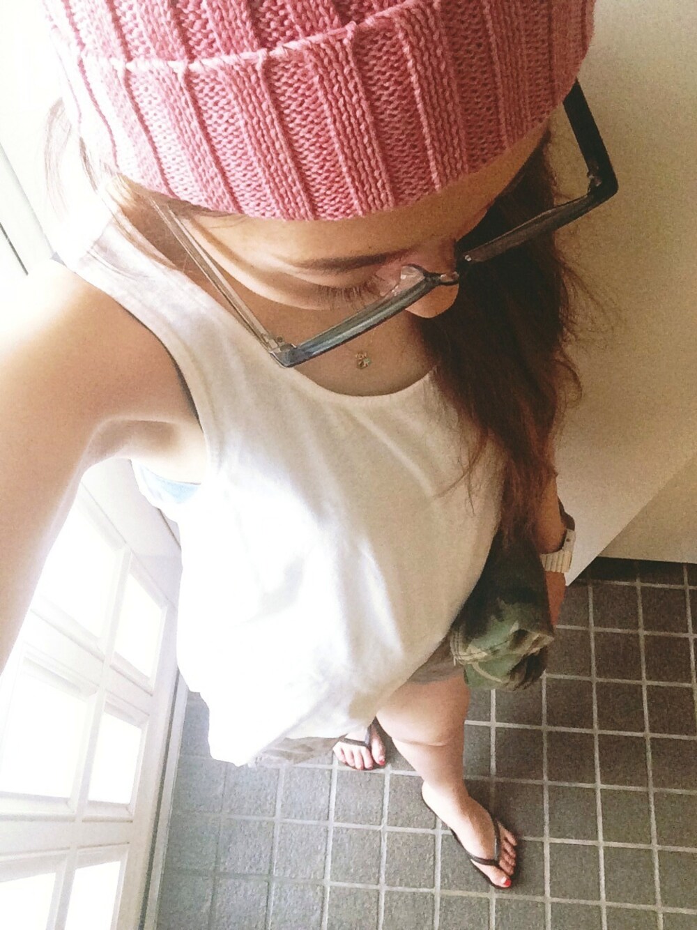 昨日は今年初のビアガーデンへ♡ 外でのビールやっぱり美味しい〜‼︎ 岩牡蠣も食べれて大満足^_^ 本日も湿気、不快度指数MAXのため、またまたタンクトップ。GUセールで390円‼︎結局3色買い…笑 バッグは折りたたんでクラッチ風。