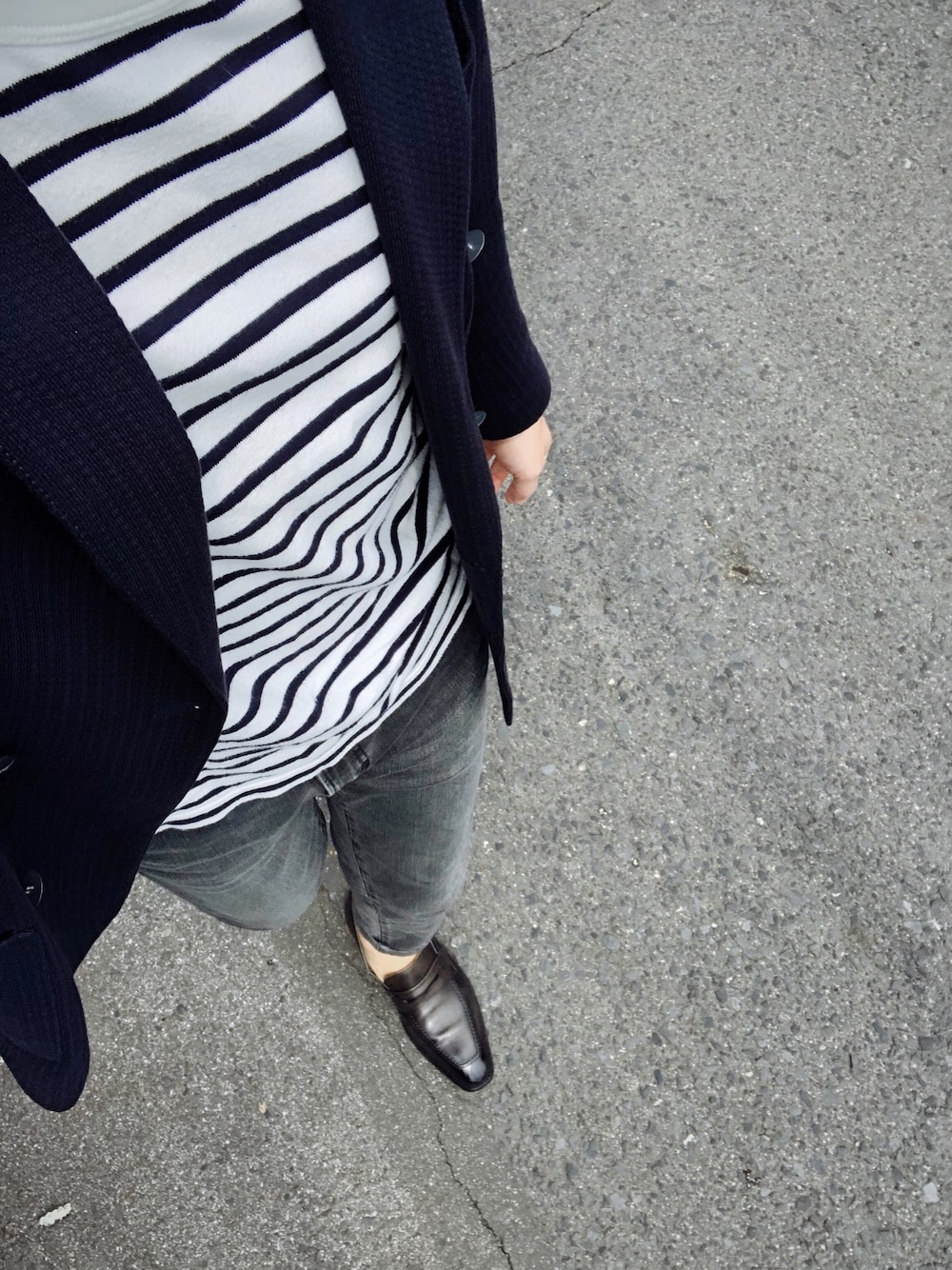 コーデとしてはシンプル&リラックスが テーマ パンツはストレッチ効いてるので楽。 無論トップスもカットソーなので楽。 ジャケットも生地感や編み込みが ラフなので堅苦しくなく着やすい。 少し明るめなトーンにしつつ ダブルジャケットのネイビーと革靴で綺麗めに締める +腕時計 +シンプルなシルバーアクセ も追加してます。
