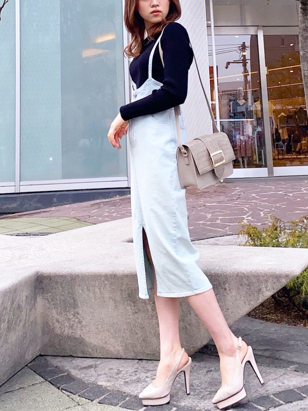 スリットデザインが可愛すぎるジャンスカはオールシーズンで使えるのが嬉しい✨