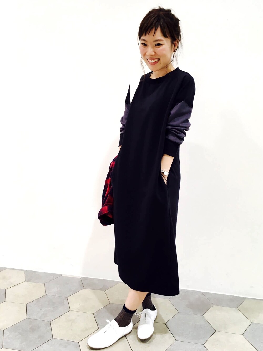 スエット素材で楽チンワンピ😌