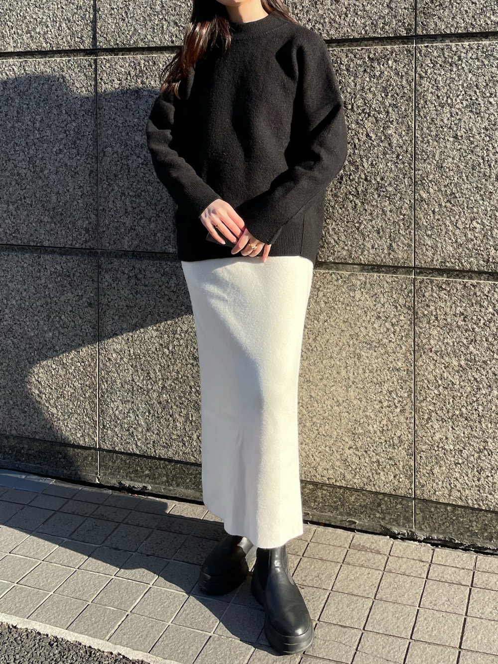 liuのスカート「スムースニットタイトスカート」を使ったコーディネート