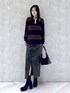 lisa(MOUSSY ルミネ横浜店)のニット/セーター「【25年AW新作】BORDER ニットポロシャツ」を使ったコーディネート