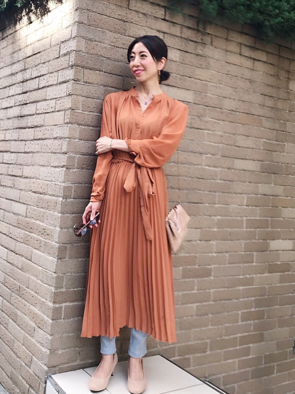 What I Wore: お仕事のあとに女子会ディナーの予定があったので プチプラだけどきれい目な アースカラーのプリーツワンピースで 初夏のお出かけスタイルです♪ ベージュ系の小物でまとめました🐈 les desseins de DIEU 人気の金線シリーズの中で1番大きいフープピアスで 夏っぽさを表現しました✨