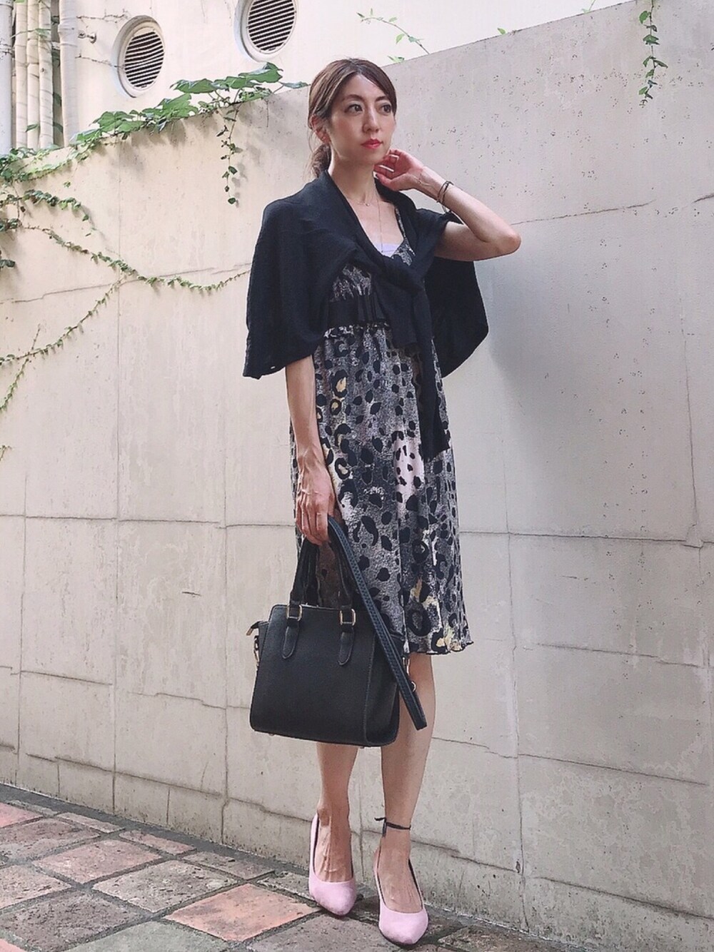 What I Wore: プリントのワンピースで きちんとスタイルです👗 時代的にプチプラも良いですが 良質なお洋服は着ていても 安心感があります💖 長年愛用しているフェミニンな印象の ハートネックレスを合わせてみました💓