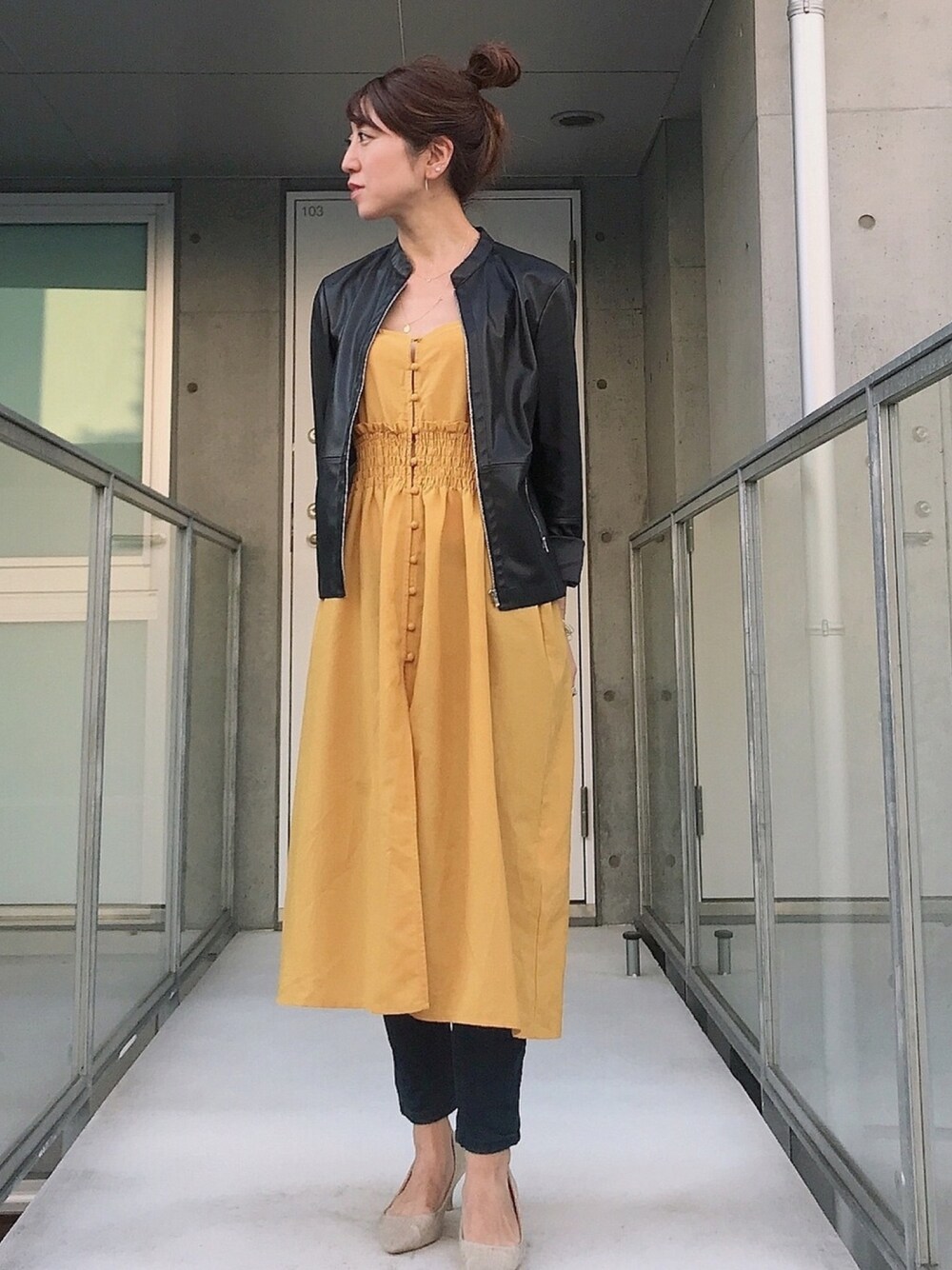いつもありがとうございます☺︎ 先日はイエローのキャミワンピのレイヤードスタイルでスキニーとブラックのフェイクレザーJKと合わせました🐈 スマイルのパヴェダイヤモンドリングを着けると大人の余裕感みたいなニュアンスが出るかなという気がします✨