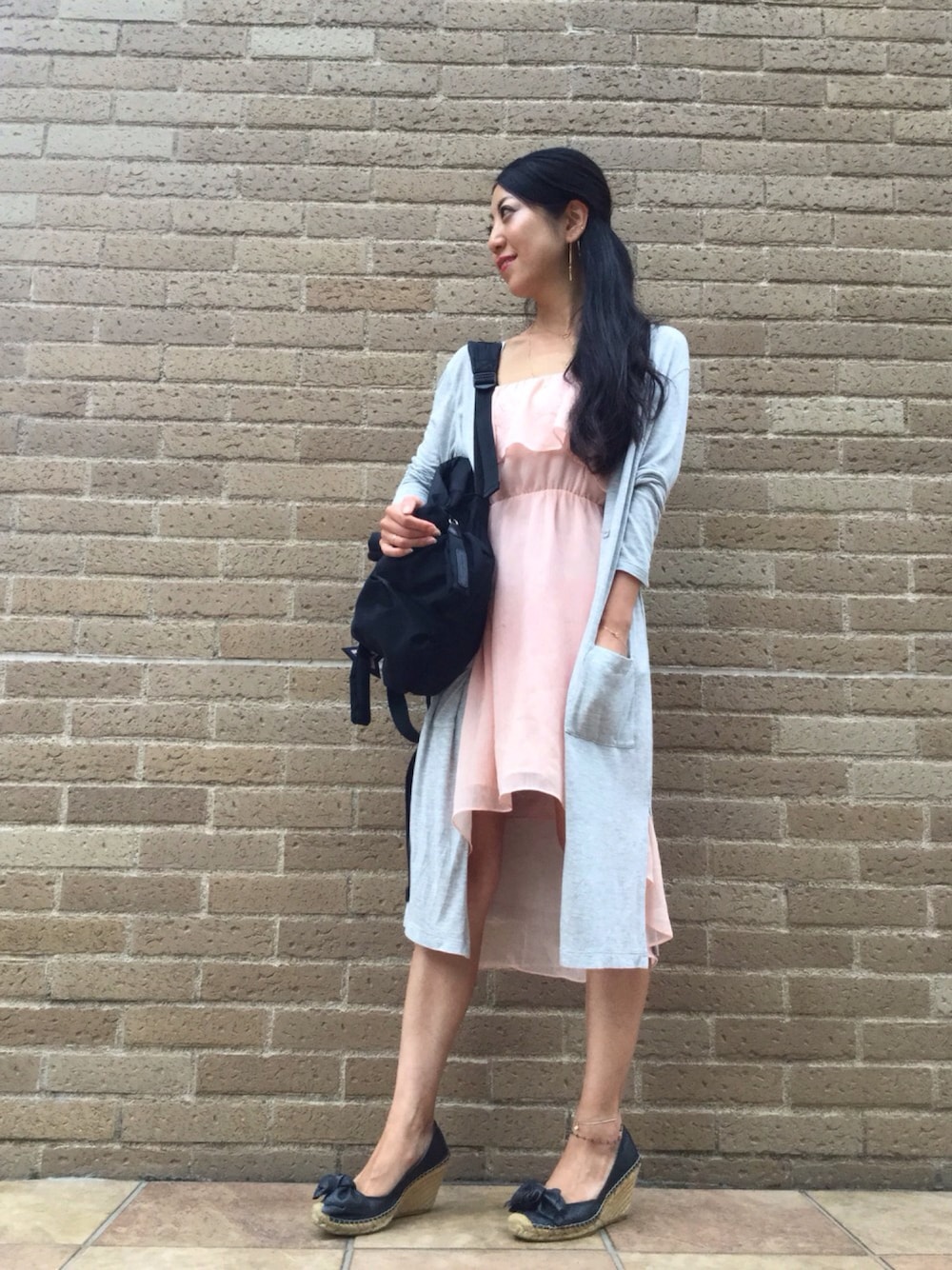 Today's Style: 朝は雨でしたがすぐに止み 蒸し暑い日となりました🌂 淡いピンクの刺繍入りシフォンワンピースにユニクロの万能なロングカーディガンを羽織っています☺︎ リュックはお気に入りのsee by Chloe 甘いワンピースに合わせて 可憐で甘い印象のles desseins de DIEUのハートネックレスを着けています❤︎ 手元はぷっくりとしたtwo plyのハートブレスレットを合わせてみました✨
