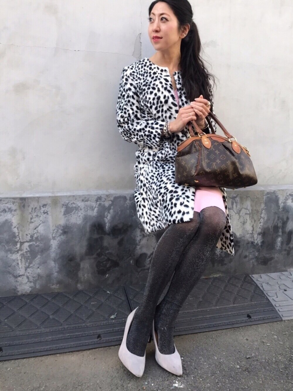 Today's Style: お仕事のあとにペニンシュラにディナーに行くお出かけがあったのでキレイめコーデの金曜日です☺︎ ピンクのワンピース×ホワイトのバンビ柄コート ラメストッキングとヒールで 上品にまとめました❤︎ バッグも普通にLVのTivoliをピックアップ ネックレスはシンプルな一粒ダイヤを合わせています★