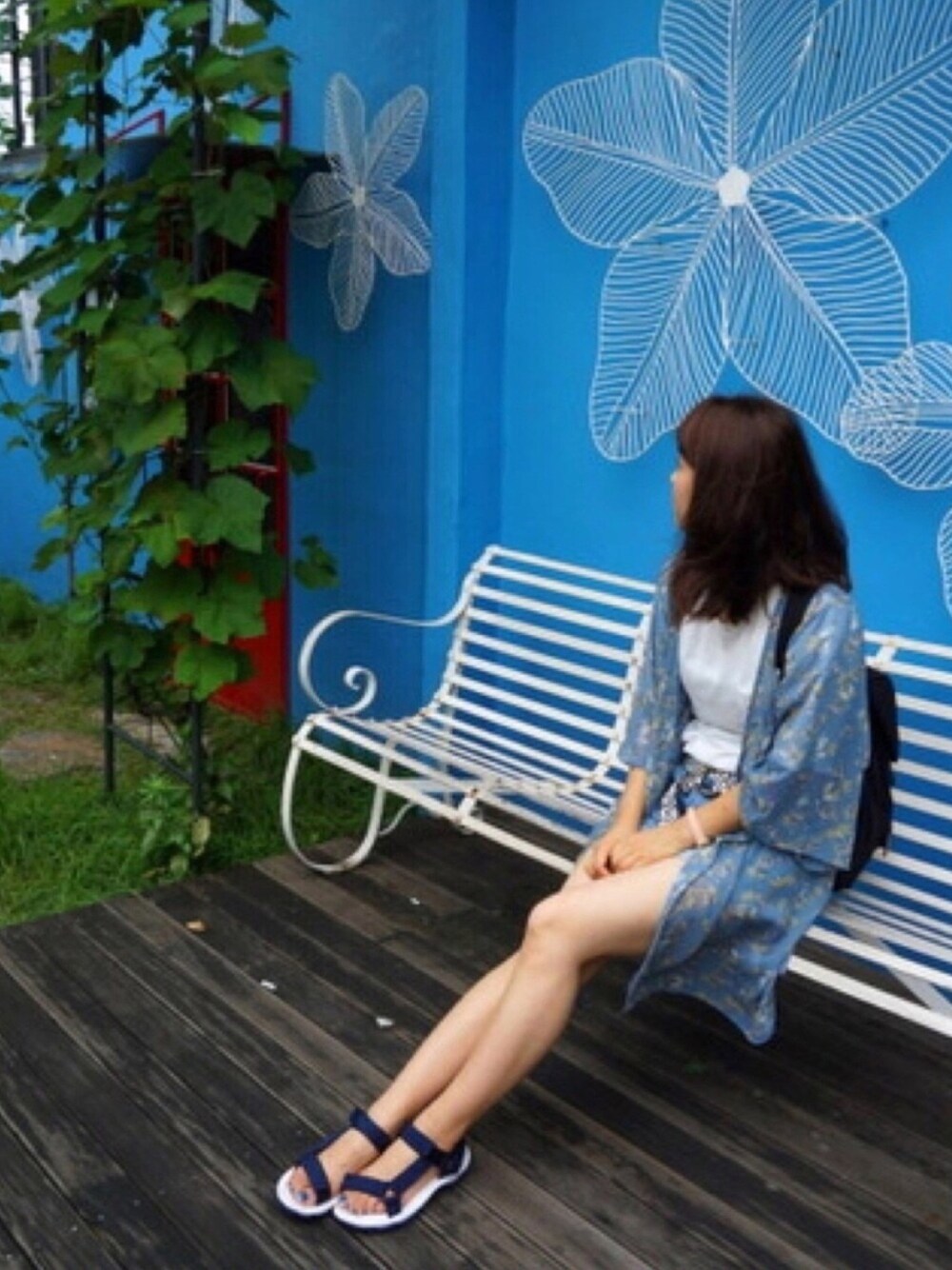 全身も青いし背景も青い🦋 この水色ガウンお気に入り〜