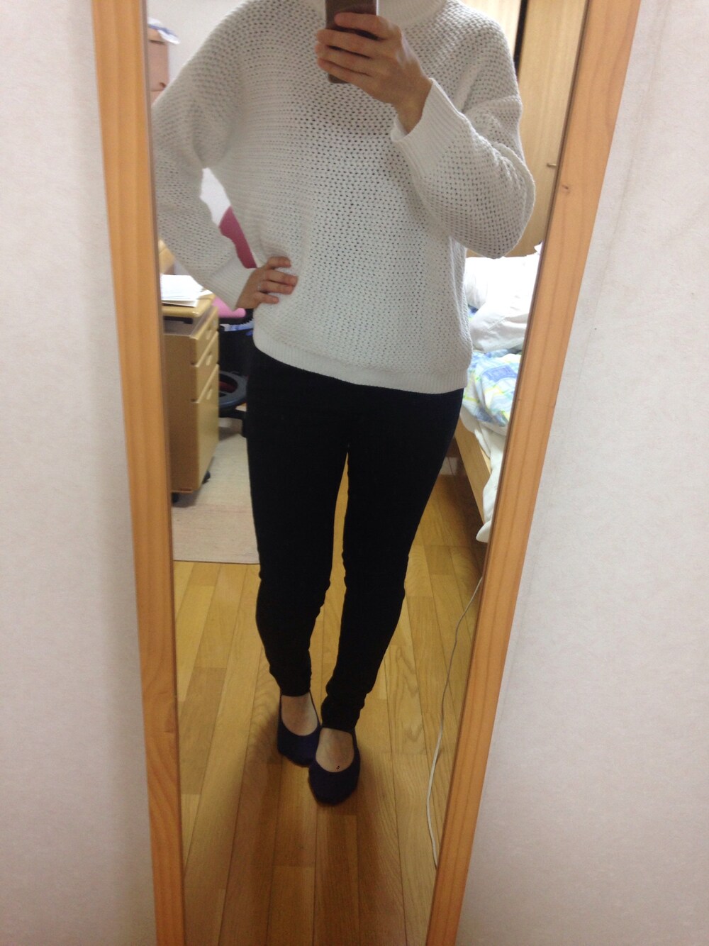 ただただシンプルに… 白と黒でモノトーンにしてみました。 GUとUNIQLOだからお財布にも優しいという。 靴は黒のパンプス。アウターは濃いグレーのコートを羽織ってお出かけです