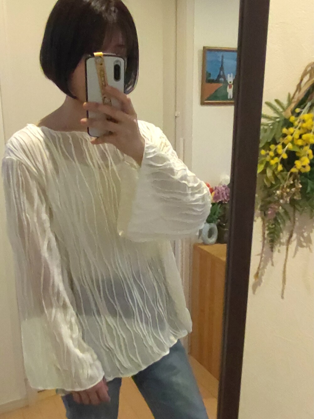 たくさんのコーディネートから見つけていただいてありがとうございます✨🐸✨ しまむらのウエーブプリーツフレアスリーブシアートップス! 好きが詰まってて、一目惚れ!