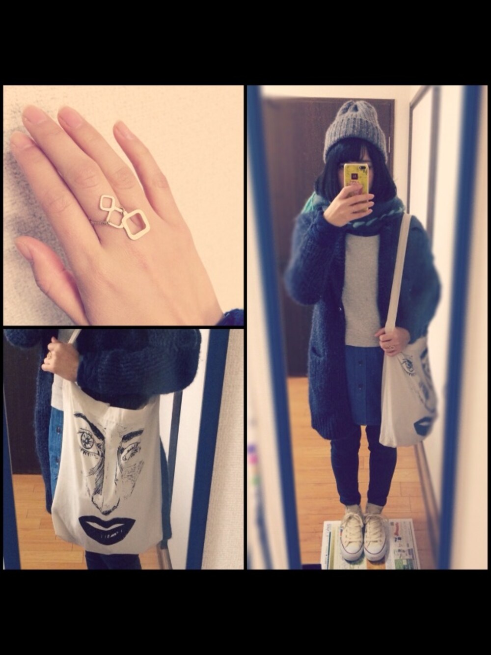 お休みの日は楽チンあったかなoutfit♡ 鞄とリングはどっちも中目黒のHで購入