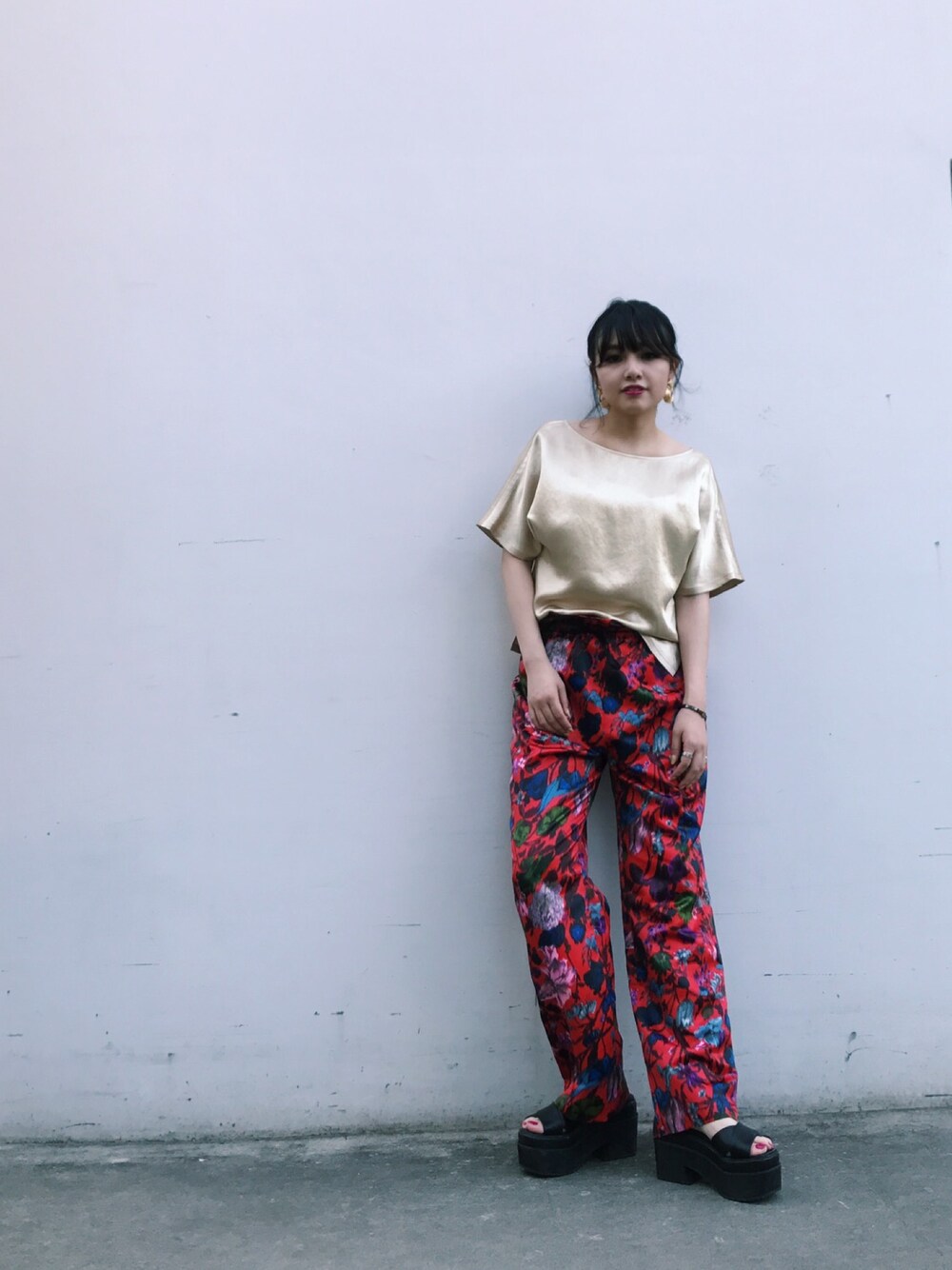 さとうりさのTシャツ/カットソー「ウェットサテンハーフスリーブプルオーバー」を使ったコーディネート