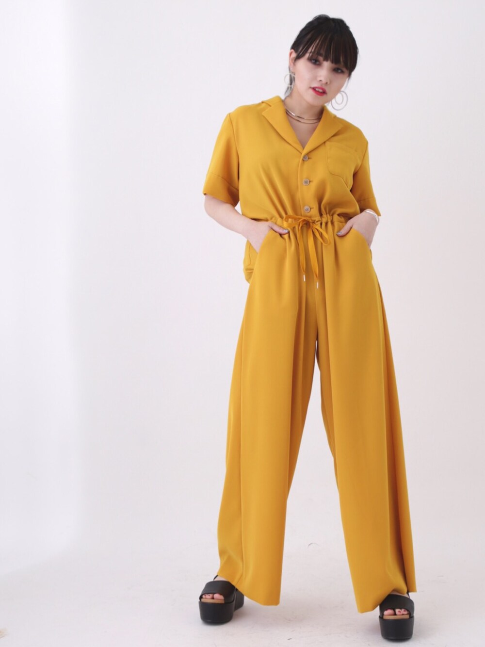 さとうりさのつなぎ/オールインワン「DRAWSTRING TAILORED JUMP SUIT」を使ったコーディネート