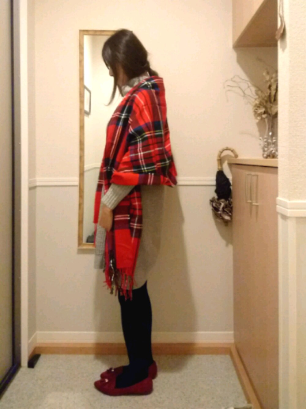 こんにちは。 ご覧いただきありがとうございます。 チェックストール流行ってますねぇー。 便乗しました。笑