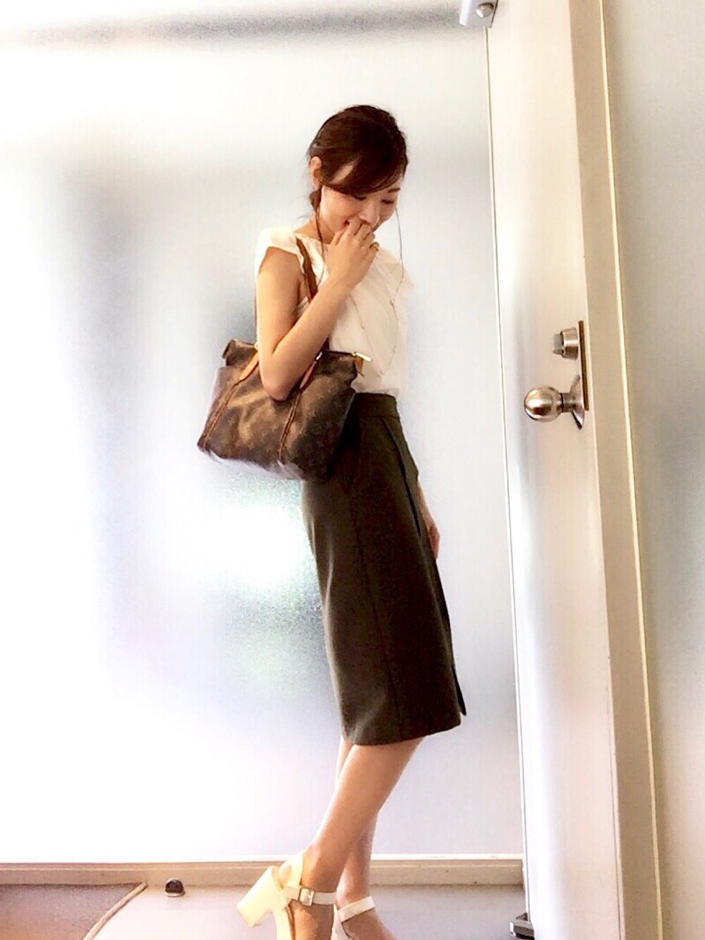 カーキのタイトスカート(*´꒳`*) プチプラコーデ♪♪♪