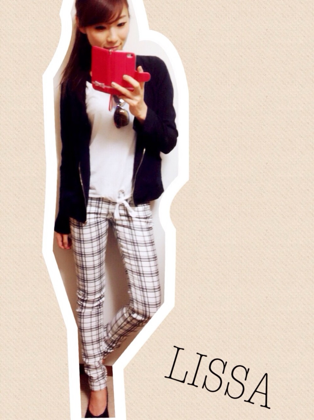 チェックのスキニーパンツ( •ॢ◡-ॢ)-♡ プチプラにGUで発見‼︎‼︎ ジャケット: BARNYAR STORM トップス: Forever21 スキニーパンツ: GU パンプス: R&E 夏はジャケットなしで もっとシンプルに着こなしたいなぁ(*´▽`*)ノ))