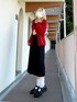 チョビちゃんのニット/セーター「フラワーコサージュスリットニット」を使ったコーディネート