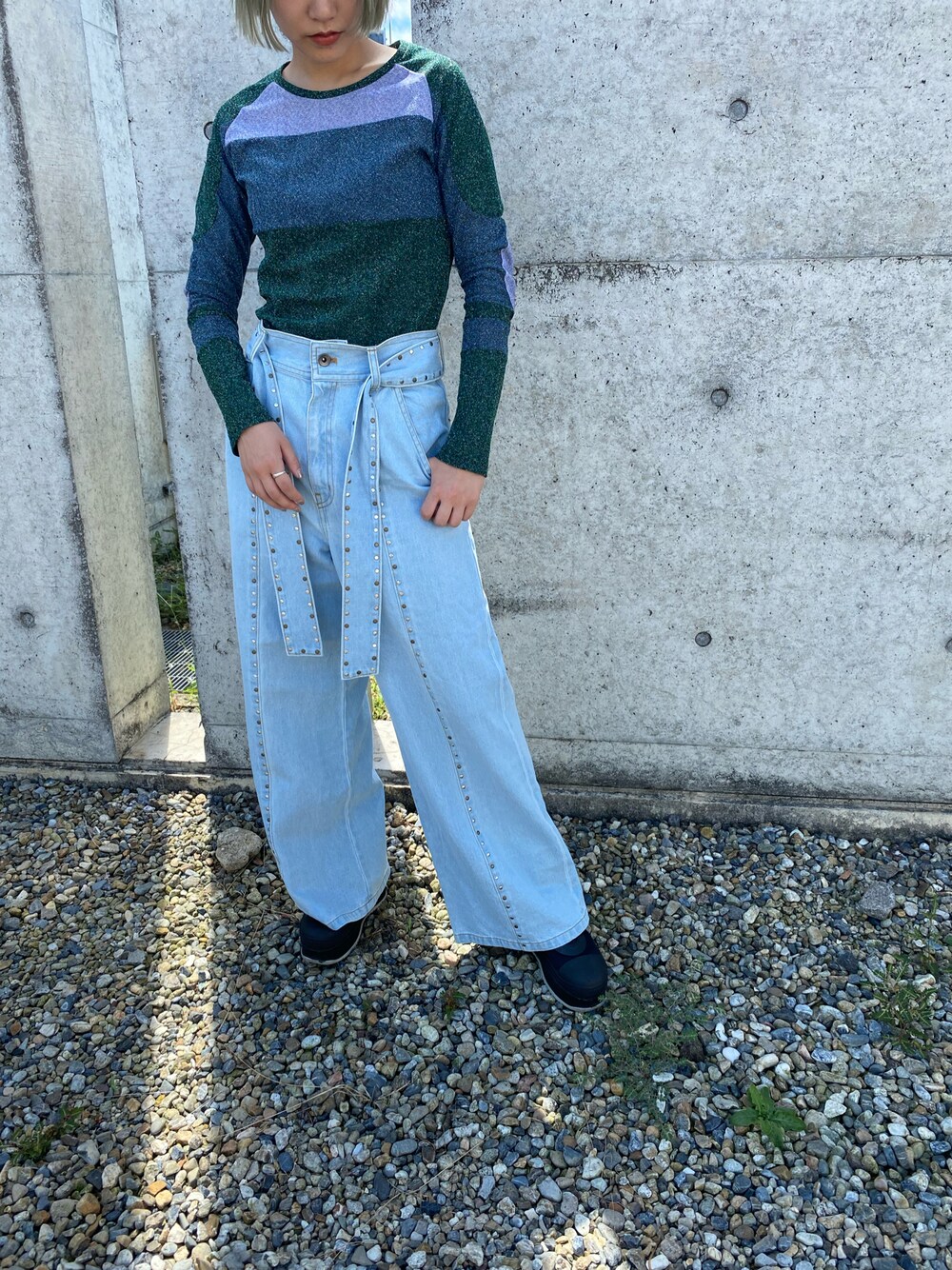 CARVEN のラメニットと、グレースコンチネンタルのスタッズデニム☺️ ニットはカラフルなだけじゃなくて、切り替えが逸品でさすがカルヴェンって感じ🥰 グレースのデニムは、ワイドで使いやすいのに、スタッズでエレガンスさもあって言うことなし🫣 これからの季節に大活躍するアイテムで組んでみました😉