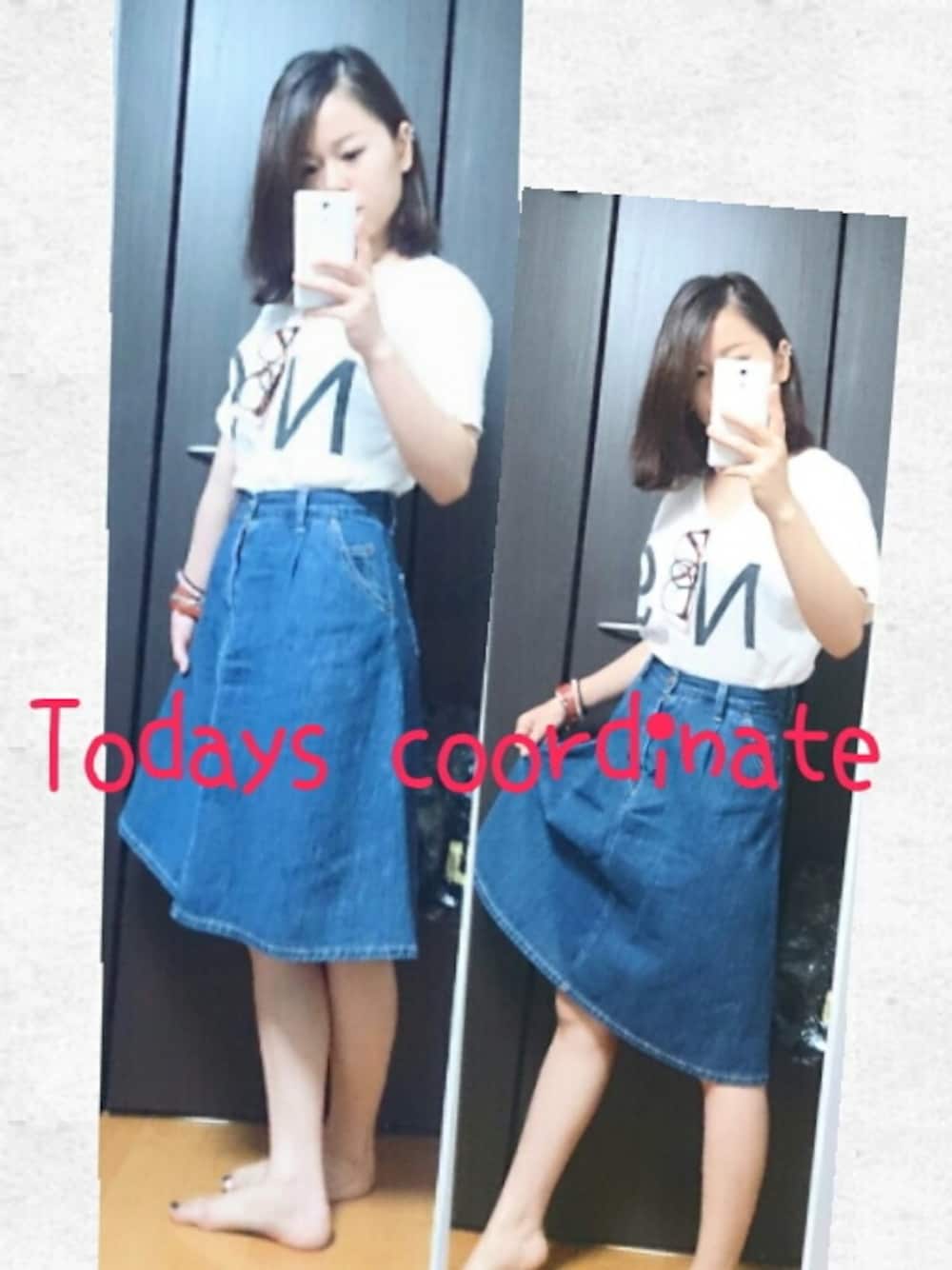 本日2回目ー! 一昨日着たミディ丈のデニムスカート(///ω///) このコーデに肩がけのチェックシャツもいいなと♪ ミディ丈の緑と赤とネイビーのスカートが欲しい(笑) 飲み会25時からだけど行ってきまーす\(^o^)/