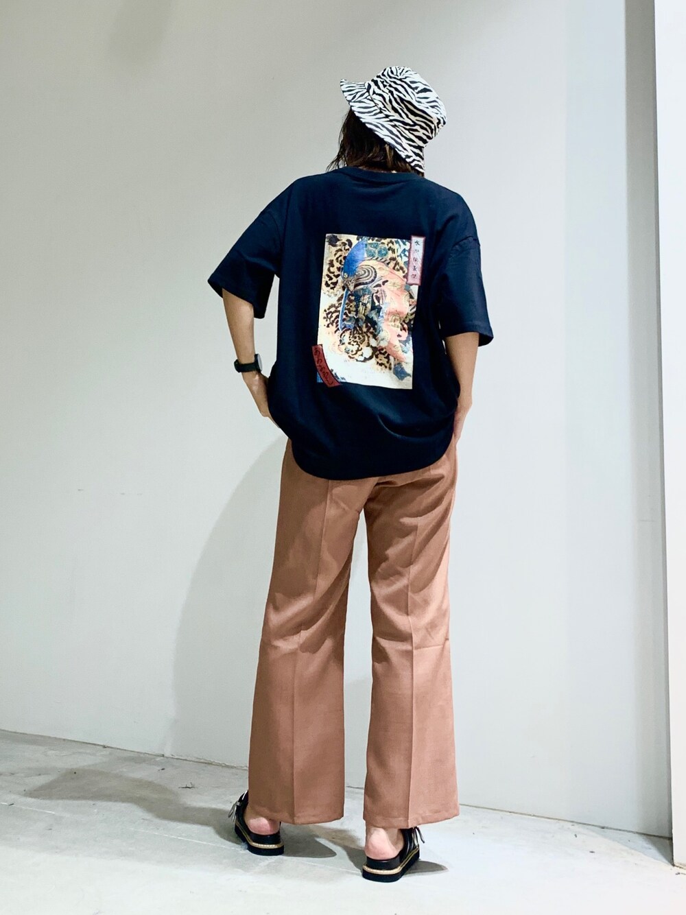 存在感のある、UKIYOEコラボTシャツ◎ 2colour展開で、フロントには小さいロゴがありバランス感の良い1枚。 #PAGEBOY #テーマパーク #フェススタイル #旅行 #ラフ #春コーデ #夏コーデ #女子会 #おうち時間 #Tシャツ #ロゴデザイン #ロゴT #ビッグT #フレアパンツ #カジュアル #ワンポイント #モード #リラックス #ゆったり #ストリート #サンダル #アニマル柄 #バケットハット #ブラック系 #オレンジ系 #高身長 #綿