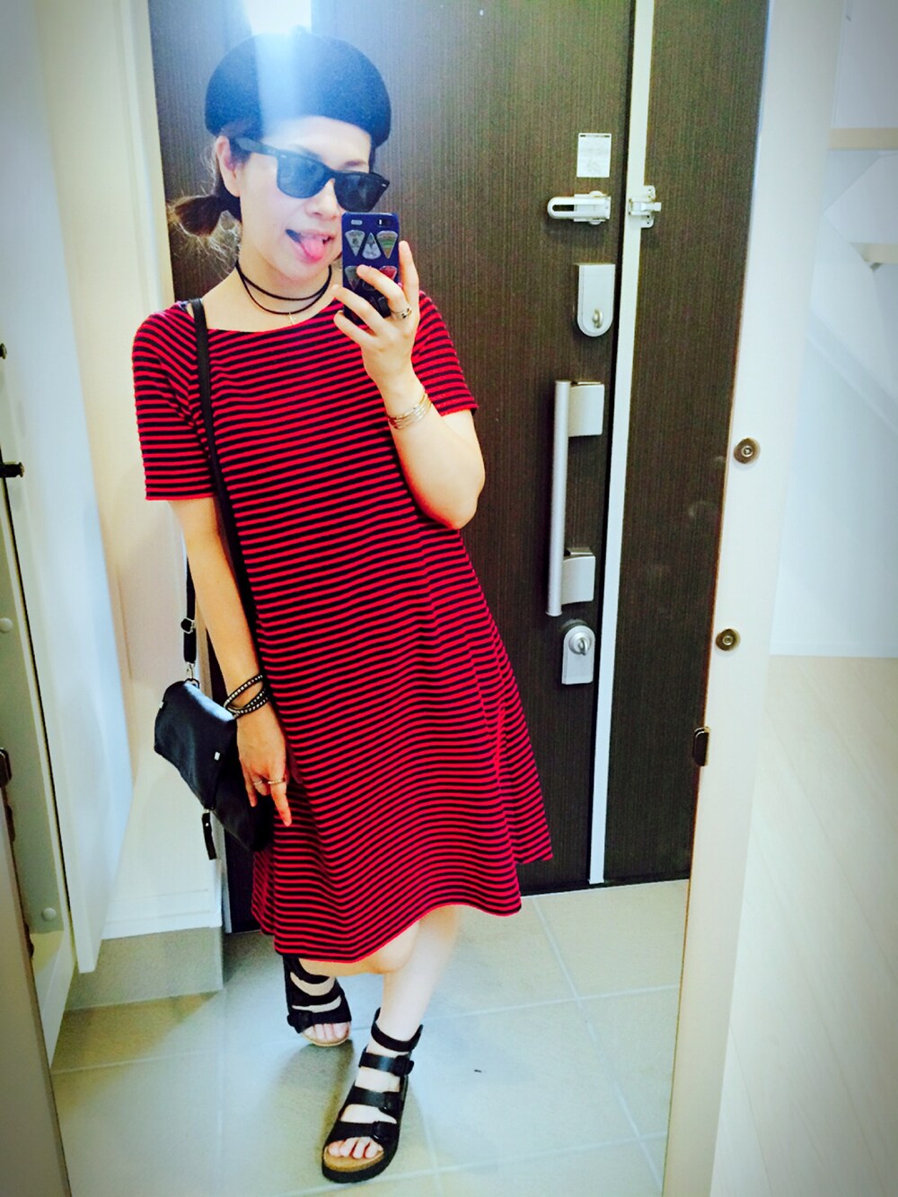 本日2度目の投稿! UNIQLOに行ったらSALEのワゴンでこの赤とネイビーのボーダーワンピを発見! 肩に少しほつれがあるらしく見ると少しだけ糸が出てる。 けどそのおかげ?で1290円! 買いでしょ!! 帰って即効着てみました😁 私の年齢ならスキニーデニムとかに合わせて着るところやけど一枚でコーデしてみました。 こんなワンピース…初めてかも笑 いやーかなり若作りですね。 足なんて出しちゃって…ちょっとこれで外歩く勇気ないですがとりあえず自己満コーデなのでポーズも調子乗ってみました( ´_>` )ハッハッハッ ハイ、お目汚し失礼しました(≡人≡;) けどかなり気に入ってます❤️