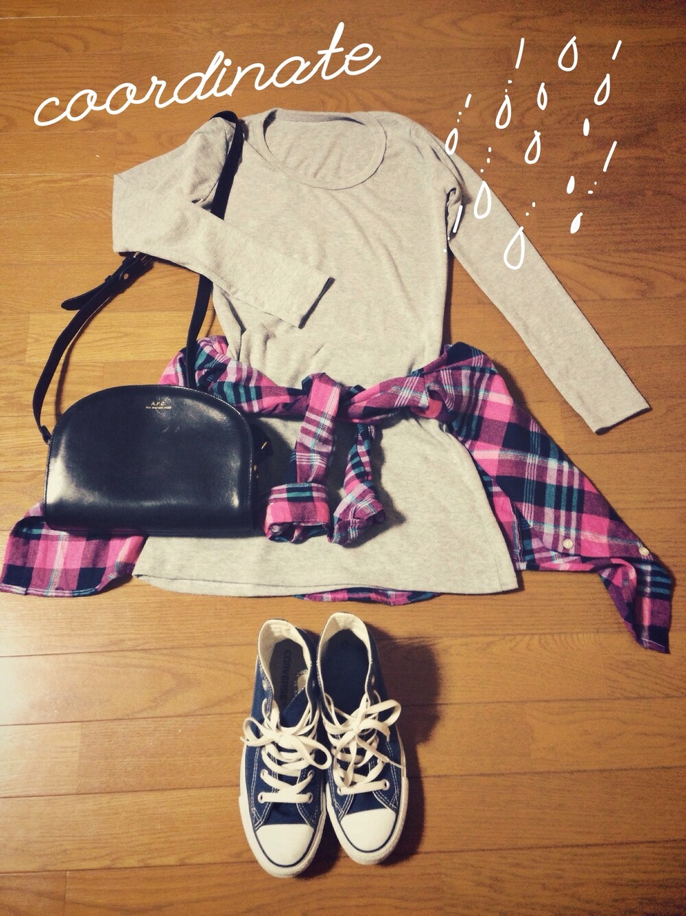 ワンピースとシャツは楽天で購入しました☻ カジュアルな中にA.P.Cのショルダーでキレイメスタイルに*\(^o^)/*