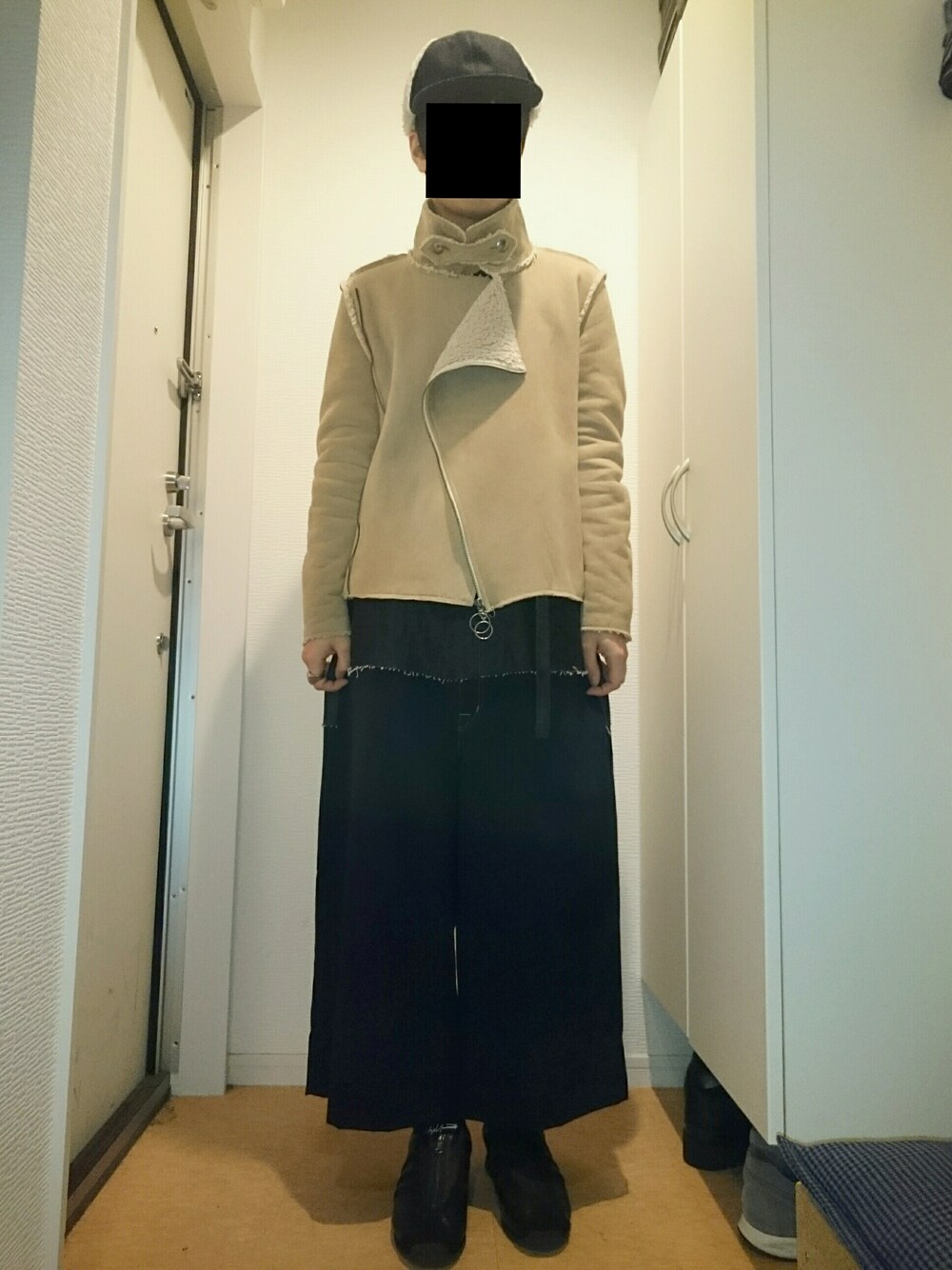 玄関暮らしのデニムパンツ「2015-16FW デニム×ウール切替パンツ」を使ったコーディネート