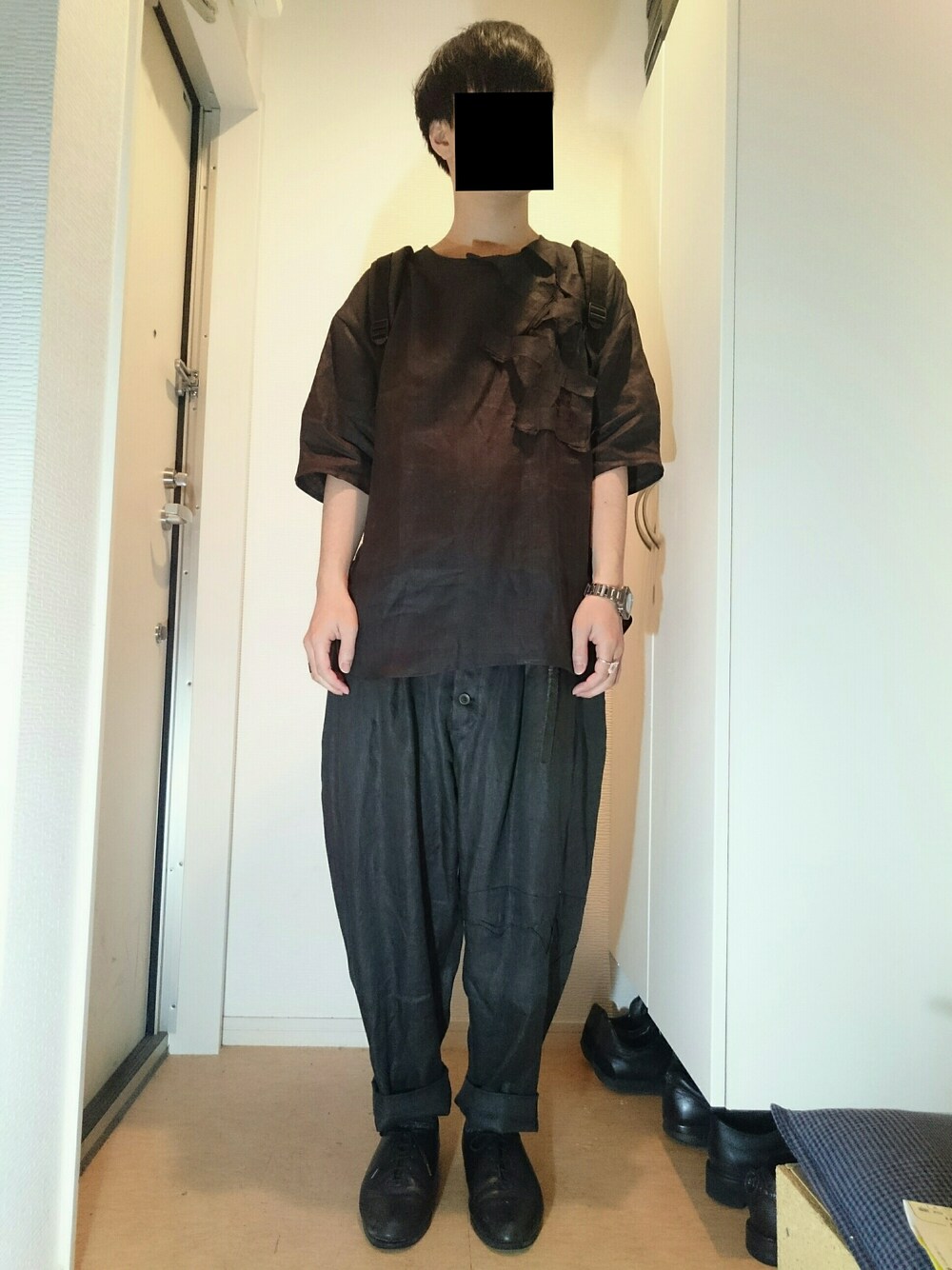 YUTA MATSUOKA 16ss受注会で注文した カットソーとパンツが届きまして 早速着てみました。 油断したせいか、何故か通勤用の リュックを背負っています。 かれこれ5年は使っている代物で ボロボロすぎて恥ずかしいので、 写真は載せません。 僕の通勤時の荷物は 白紙 おにぎり おにぎり 大きいおにぎり …風来人かな?