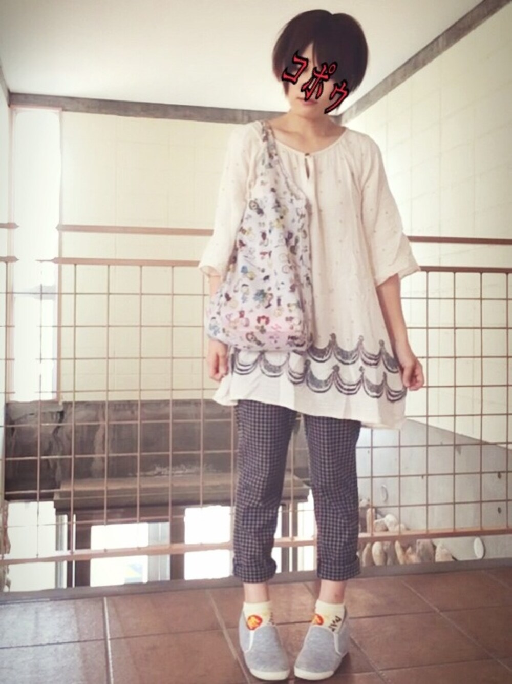 ゆるコーデ★ バイトしかない日は ゆったりスタイルにかぎるヽ(*^ω^*)ノ 上下古着です! ミスドのスヌーピーバックお気に入り!
