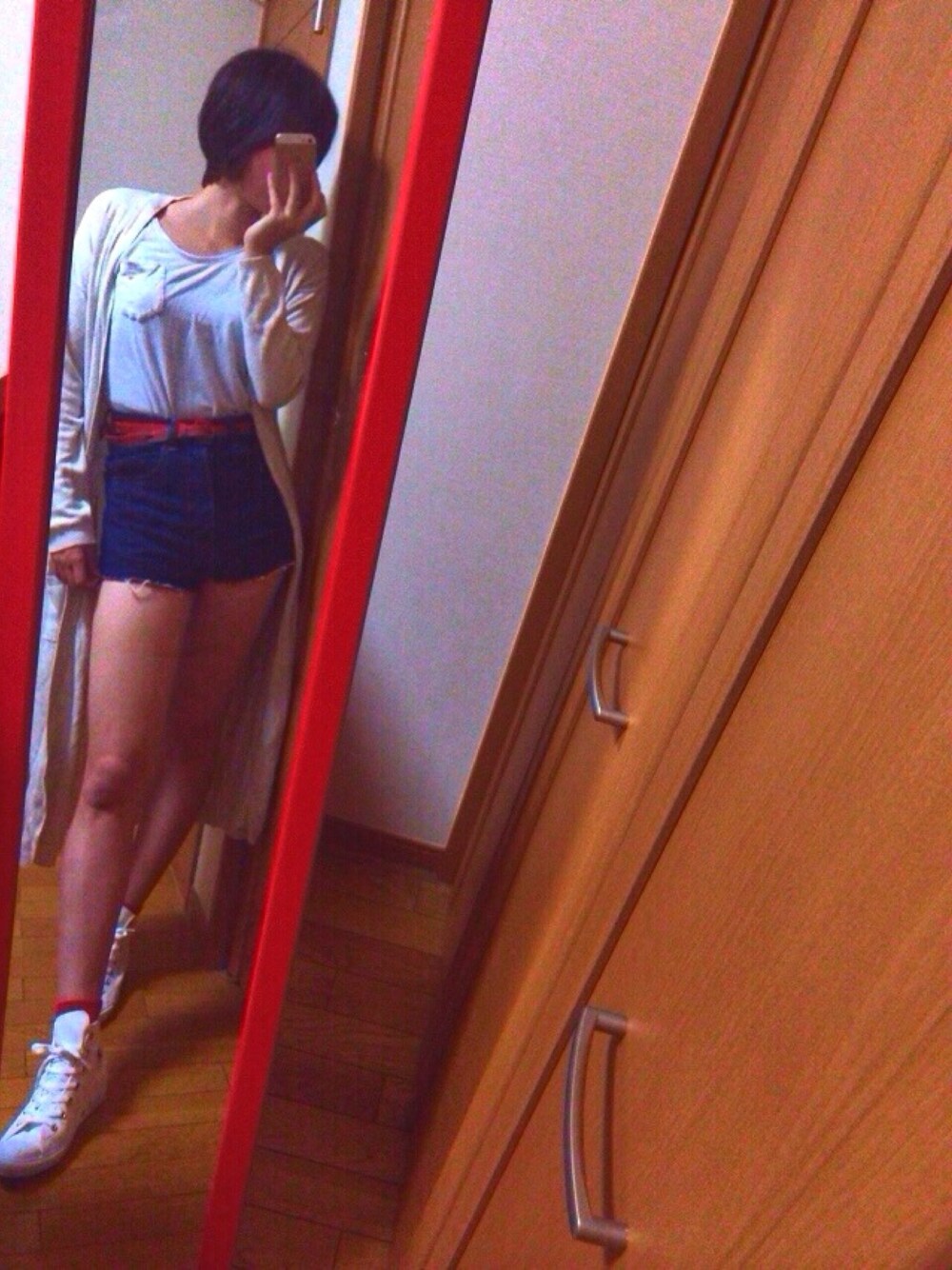 更新が凄いあいた。 少し前のコーデ。 最近ショートにしました。 ザックリ25cmくらい切ったかな? ショートにするとやっぱり、 脚をみせたくなる! メンズライクな格好が大好き😊