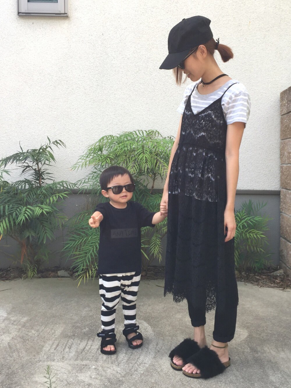 おはよーございます♡ いつかのcoordinate。 黒とボーダーでリンクコーデ♡ 私はスッピンなのでサングラス😎 せっかくのお休みが雨🙄 何しよっかなーー👯 いつも♡、save ありがとうございます💓