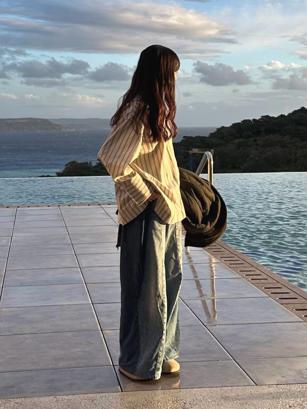 シャツの下にタートルネックを合わせて今っぽく👔 ボタンが2つずつ並ぶデザイン、かわいいー! Instagram: @lky.cpp